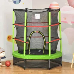 HOMCOM 5.2ft Kids Trampoline With Enclosure Net For 3-6 Years – Green/Black – 342-032GN