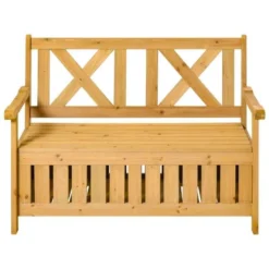Outsunny 2-Seater Wood Storage Garden Bench – Natural – 84B-740ND
