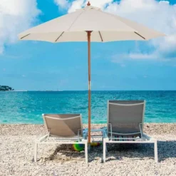 Outsunny 2.3m Half Steel Frame Outdoor Parasol – Beige – 84D-074BG