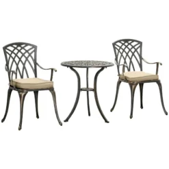 Outsunny 3 Piece Cast Aluminium Garden Bistro Set With Cushions – Bronze – 84B-784