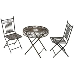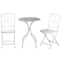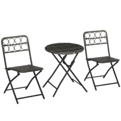 Outsunny 3 Piece Garden Bistro Set With Foldable Coffee Table & Chairs – Grey – 84B-638