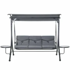 Outsunny 3 Seater Garden Swing Chair With Coffee Tables – Grey – 84A-162