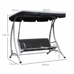 Outsunny 3 Seater Porch Swing Chair With Canopy – Black – 84A-053BK