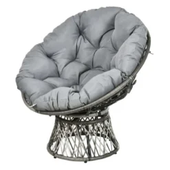 Outsunny 360° Swivel Papasan Moon Bowl Chair – Grey – 867-021V70GY