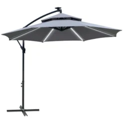 Outsunny 3m Banana Hanging Cantilever Parasol With Crank Handle And Cross Base – Grey – 84D-096GY