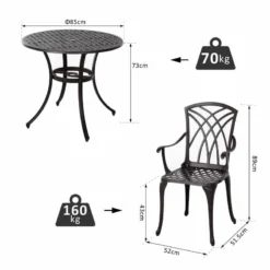 Outsunny 4-Seater Cast Aluminium Outdoor Garden Table & Chair Set – Brown – 84B-346