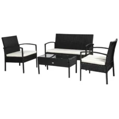 Outsunny 4-Seater Rattan Garden Furniture Set – Black – 860-024