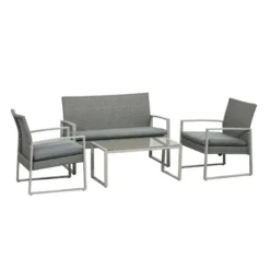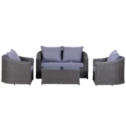 Outsunny 4-Seater Rattan Garden Furniture Set – Grey – 860-083
