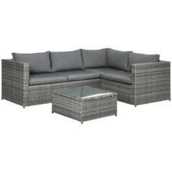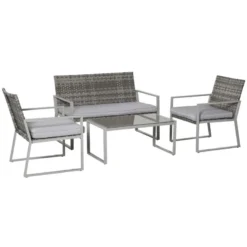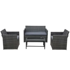 Outsunny 4-Seater Rattan Garden Furniture Set – Grey – 860-114