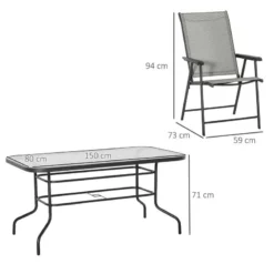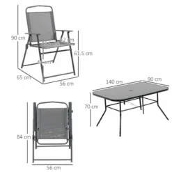 Outsunny 7 Piece Classic Outdoor Dining With Folding Chairs Set – Black & Grey – 84B-425V01