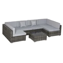 Outsunny 7-Seater Patio PE Rattan Sofa Furniture Set With Cushion – Mixed Grey – 861-040V70GY