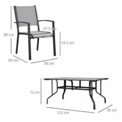 Outsunny 7 Piece Garden Dining Armchairs And Table Patio Furniture Set – Black & Grey – 84B-839