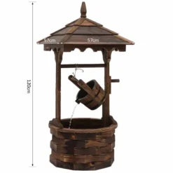 Outsunny Fir Wood Garden Décor Wishing Well Barrel Water Feature – Brown – 844-273V70