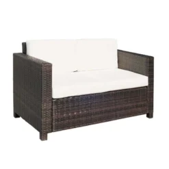 Outsunny Rattan 2 Seater Garden Sofa – Brown/Cream – 860-031BN