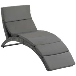 Outsunny Reclining Rattan Sun Lounger With Pillow – Cream – 01-0785