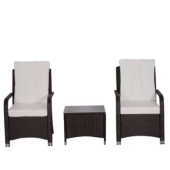 Outsunny 2-Seater PE Rattan Side Table & Armchair Bistro Set With Pillows – Black- 860-086BK