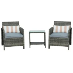 Outsunny 2-Seater PE Rattan Side Table & Armchair Set With Pillows – Grey – 860-086GY