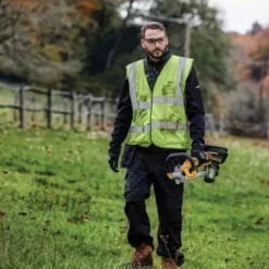 With an innovative folding hinge mechanism that reduces the length by 40% for accessible storage and quick portability. Brushless motor gear drive design, providing more torque and maintaining cut speed under load.