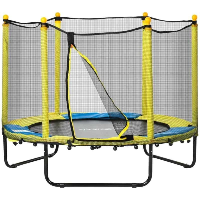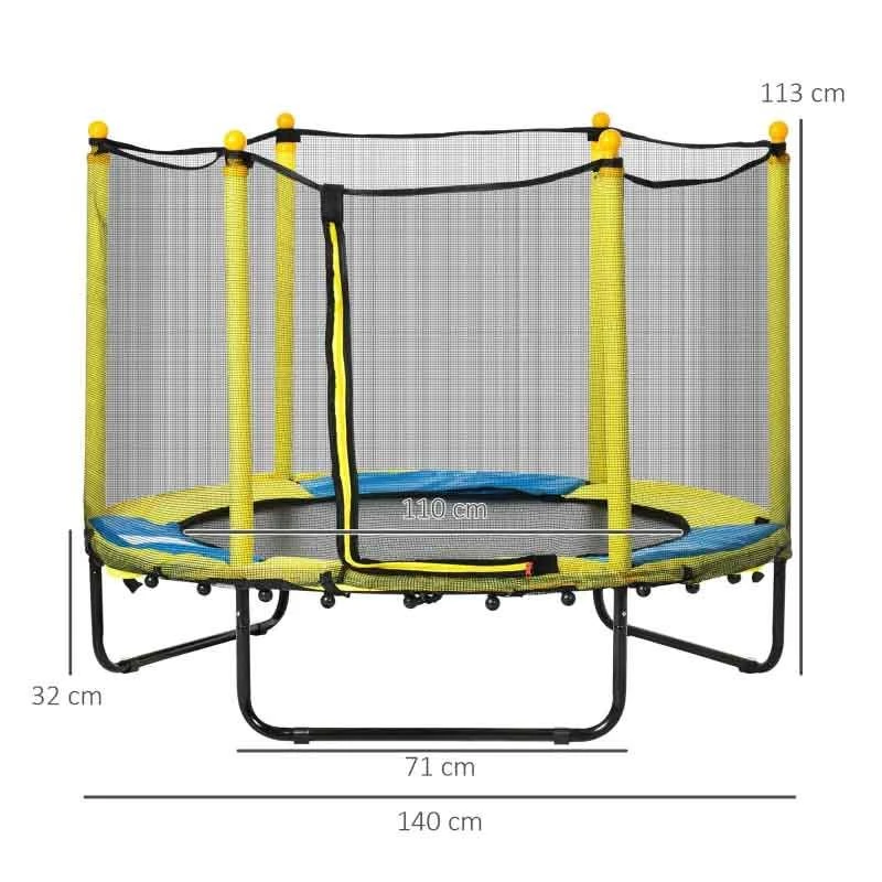 Homcom 4.6ft Kids Trampoline With Enclosure Net For 1-10 Years – Yellow – 342-066V00YL