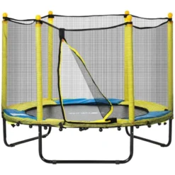The Homcom trampoline features a zipped net door which provides easy access in and out. The anti-uv net provides a safe play space for children by preventing them from falling off. The thick padded poles prevent accidents and the bungee design of the, instead of metal springs reduces the risk of injury. With a solid steel frame, this trampoline is powder-coated for strength and durability which is ideal for daily use. Encourage a healthy lifestyle for your young kid to work muscles, boost heart rate and improve flexibility.
