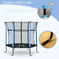 Homcom 5.2ft Kids Trampoline With Enclosure Net Indoor For 3 – 10 Years – Blue – 342-066V00YL