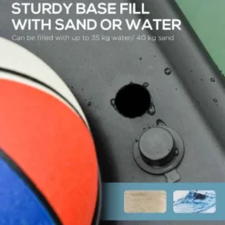 The HOMCOM Portable Basketball Hoop can be adjusted to five different levels, so all ages can enjoy shooting and scoring and is suitable for both indoors and outdoors. The base can be filled with 35kg of water, 40kg of sand or 45kg of water and sand, ensuring this stand will be kept firmly in place. The steel frame and rim is strong and durable and the nylon net and PE basketball board is suitable for different weather conditions. The basketball hoop stand build has 2 portable wheels to make the basketball base easy to move.