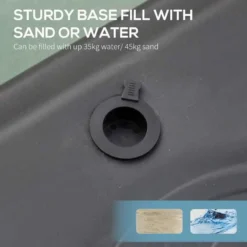 - The bottom base can be filled with water (35kg) or sand (45kg) for better stability