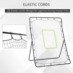 This rebounder net is great for improving your confidence away from the pitch, improving your hitting and throwing skills and building strength. Made from powder-coated steel for reliability over the years. There is also an adjustable back to change angle and height as well as stakes which are included for extra stability to the ground. The weather resistant net is suitable for use all-year round. The 21 eleastic chords provide support for the net against strong impact hits. The strike zone helps to improve your hitting and throwing accuracy. This product is also easy to move and store away.