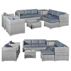 Oseasons® Malta XS Rattan 9 Seat U-Shape Sofa Set – Dove Grey – 106450