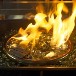 The Oseasons® Trinidad Deluxe Rattan 8 Seat Firepit Modular Sofa Set comes with an LPG Matching Dove Grey Rattan Firepit, which also includes 5kg of Fire Glass Pebbles, a PVC firepit cover and a Glass Wind Shield. The Gas Tank can fit inside the Table itself. It’s recommended to use no larger than a 5kg Standard Propane Tank. This product also comes with a 1 year manufacturers guarantee and is an ideal feature with weatherproof rattan allowing you to sit outdoors within a range of weathers.