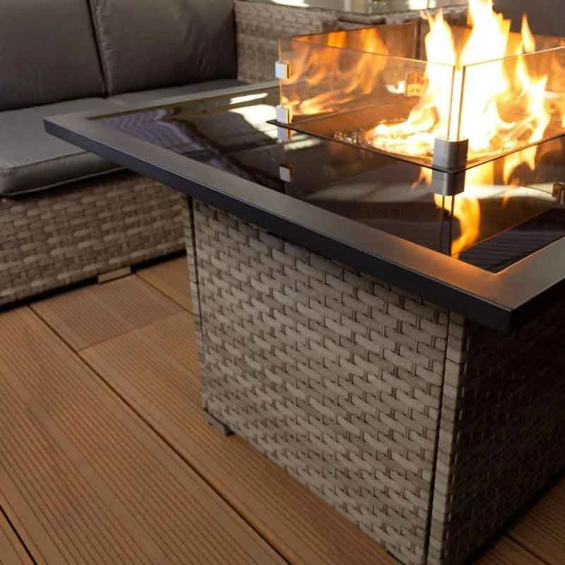 - 1 x Royal Fire™ Cancun Rattan Square Gas Fire Table in Dove Grey. W: