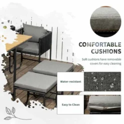 This stylish looking eleven-piece set from Outsunny is ideal for a family and friends get-together. Built with a rust-resistant metal to give it a solid frame. The wood grain plastic table top is very easy to clean and adds an elegant look. You can save space by nesting the ottomans and chairs neatly under the table when not in use.