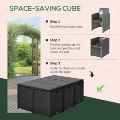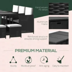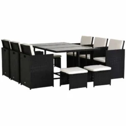 Outsunny 11 Piece Rattan Dining Patio Set with Cushion – Black & Milk White – 841-163