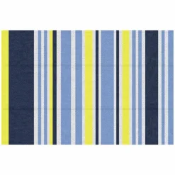 Experience the convenience and versatility of the Outsunny Waterproof Outdoor Rug for all your outdoor activities. Whether it’s camping, picnics, festivals, or enjoying your own garden, this outdoor rug is a perfect companion. Simply fold it and take it wherever you go. Made from durable and water-resistant polypropylene with a protective coating, it can withstand outdoor use and prevent sun fading and damage. The reversible design allows you to switch sides when one gets dirty, extending its usability. With its stylish dark blue, light blue, yellow, and white stripe pattern, it adds a touch of vibrancy to your outdoor space. Enhance your outdoor adventures with this practical and eye-catching outdoor rug.