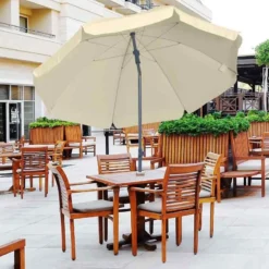 Outsunny 2.2m Tilt Beach Parasol – Cream White – 84D-039CW