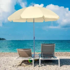 Outsunny 2.2m Tilt Beach Parasol – Cream White – 84D-039CW