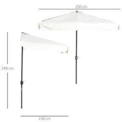 Outsunny 2.3m Half Round Parasol – Cream White – 84D-008V01CW