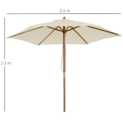 Outsunny 2.5 m Wooden Umbrella Parasol – Cream – 01-0212