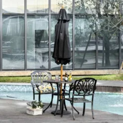 Outsunny provides a fashionable wooden parasol for outdoor use that provides shade and shelter from rain and wind. This 2.5m parasol goes well with a variety of settings, including villas, gardens, courtyards, swimming pools, and plazas. It has a gourd-shaped top and is made of sturdy polyester fabric. It also has a rope pulley system for simple opening and closing.