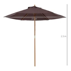 Outsunny 2.5m Wooden Parasol Sun Shade – Coffee – 01-0582