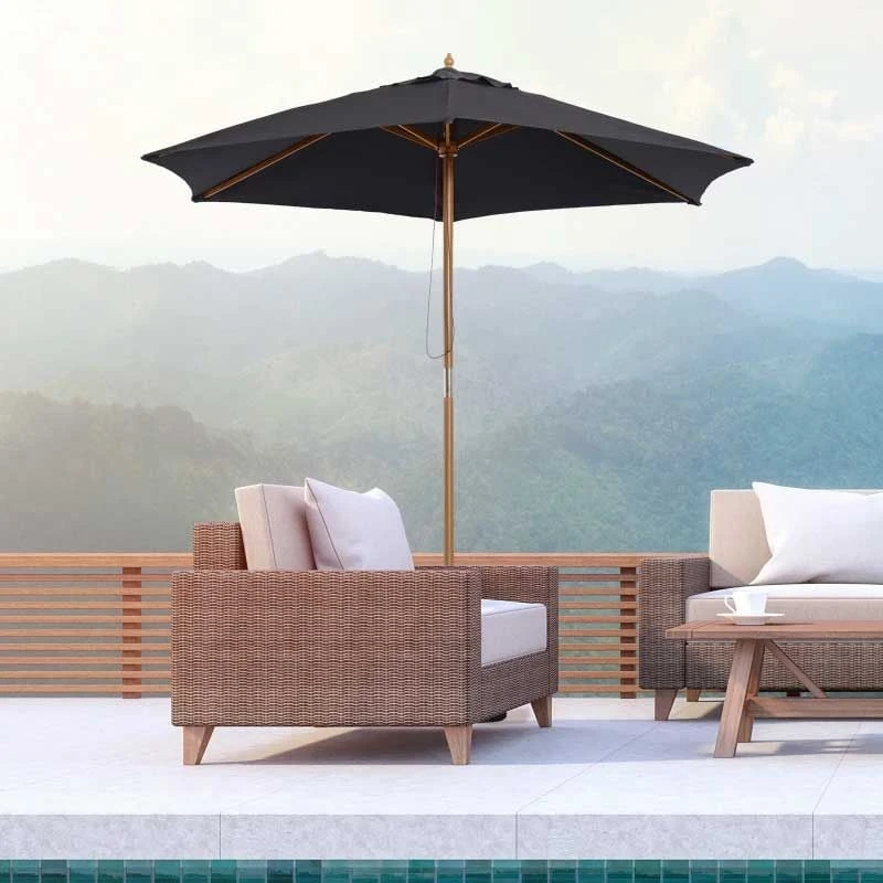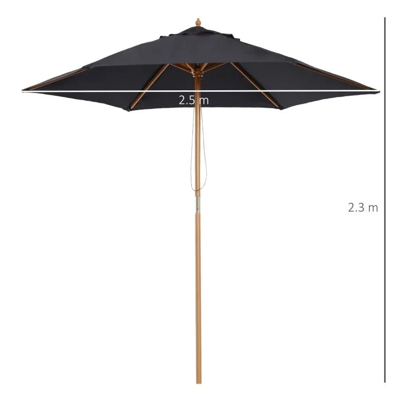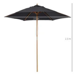 Outsunny 2.5m Wooden Umbrella Parasol – Black – 01-0211