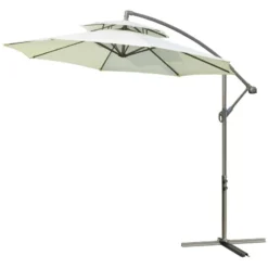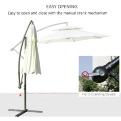 Outsunny 2.7m Banana Cantilever Parasol with Crank Handle and Cross Base – Beige – 84D-187BG