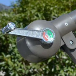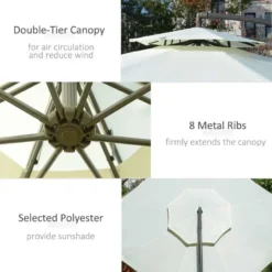 The cantilever patio umbrella by Outsunny is stylish and offers shade without the inconvenience of a central pole. It’s built of steel and features eight ribs that connect to the canopy for added stability. The handle conveniently adjusts the canopy angle, and the crank handle easily opens and closes the umbrella. It also has a double-tier polyester canopy for improved airflow, a cross base for enhanced stability, and assembly weights.