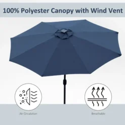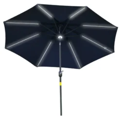 Outsunny 2.7m Garden Parasol Sun Umbrella with LED Solar Light – Blue – 84D-105NU