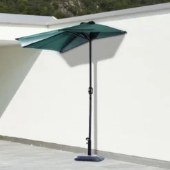 Outsunny 2.7m Half Round Umbrella Parasol – Green – 84D-007GN