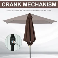Create a shaded oasis in your outdoor space with the Outsunny Large Garden Umbrella. This sun umbrella is perfect for enjoying the shade on sunny days and can be tilted for better protection. It features a sturdy metal frame and a shade made of durable polyester fabric in a classic coffee color. The canopy provides ample shade for 4 to 6 chairs, making it suitable for gardens, backyards, and decks. The powder-coated aluminium pole and 6 metal ribs ensure optimal support and stability. The crank operation allows for easy opening and closing, while the push-button tilt feature enables you to adjust the shading angles. The fade and weather-resistant polyester canopy offer reliable sun protection. Please note that the base is not included.