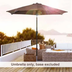 Create a shaded oasis in your outdoor space with the Outsunny Large Garden Umbrella. This sun umbrella is perfect for enjoying the shade on sunny days and can be tilted for better protection. It features a sturdy metal frame and a shade made of durable polyester fabric in a classic coffee color. The canopy provides ample shade for 4 to 6 chairs, making it suitable for gardens, backyards, and decks. The powder-coated aluminium pole and 6 metal ribs ensure optimal support and stability. The crank operation allows for easy opening and closing, while the push-button tilt feature enables you to adjust the shading angles. The fade and weather-resistant polyester canopy offer reliable sun protection. Please note that the base is not included.