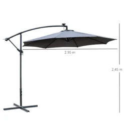 Outsunny 2.95m LED Patio Banana Umbrella Cantilever Parasol with Crank Cross Base – Grey – 84D-066GY
