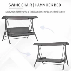 Outsunny 2-in-1 3-Seater Garden Swing Chair – Grey – 84A-180