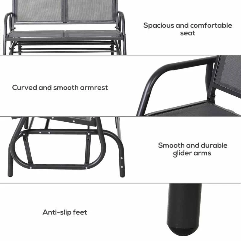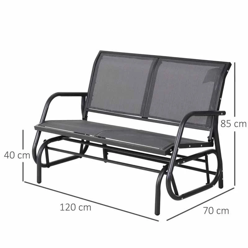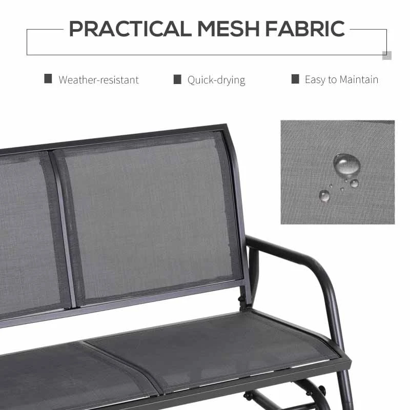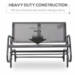 Enjoy a relaxing day in the sun or shade with this Outsunny love seat for the garden. With a rocking function, this bench will glide you back and forth smoothly for ultimate relaxation. Constructed from a durable powder-coated steel frame this bench is sturdy and will last for years to come. Breathable sling fabric and high back offer you body support and comfort. The garden rocking chair has curved rocker arms that are heat-resistant and wear-resistant, bringing increased comfort when lounging and relaxing.